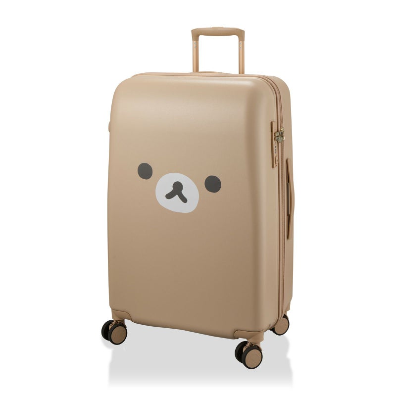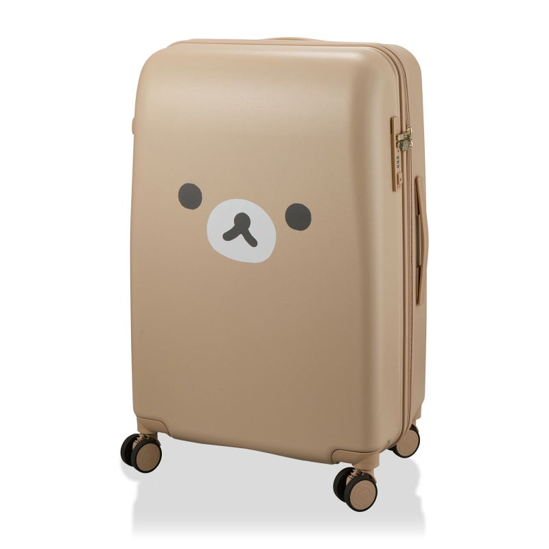 リラックマやコリラックマの顔が大きくデザインされたスーツケース。「RK33.リラックマニューベーシック」はスーツケース背面にリラックマのしっぽとファスナーが描かれています。「RK40.コリラックマニューベーシック」の背面にはしっぽが描かれています。
