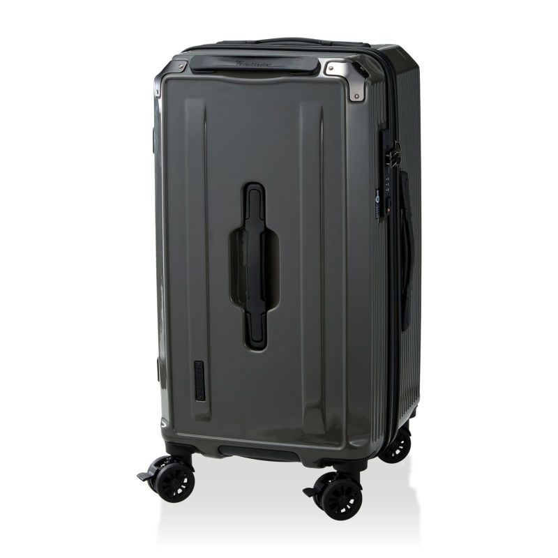 ボディは飛行機の窓などにも使われる頑強&軽量素材の『ポリカーボネート』が100%!また、グリップマスター(ボディ前面の上下の持ち手)が付いているので、車への出し入れや階段の上り下り、高い所に持ち上げる際に便利。