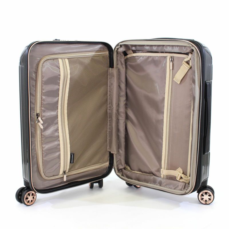 ボディには剛性・耐衝撃性がある『ABS樹脂』に、飛行機の窓などにも使われる頑強&軽量素材の『ポリカーボネート』を加えた混合素材を採用。頑強なボディで大切なお荷物を守ります。フタ側の仕切りはファスナーで閉じられるので、開閉の際に荷物がこぼれる心配がありません。