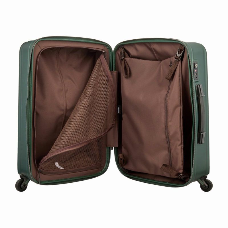 内装はフタ側はメッシュファスナー仕様で開閉時に荷物がこぼれる心配がありません。また、胴側の内装は荷崩れを防止するクロスベルトと間仕切り付き。