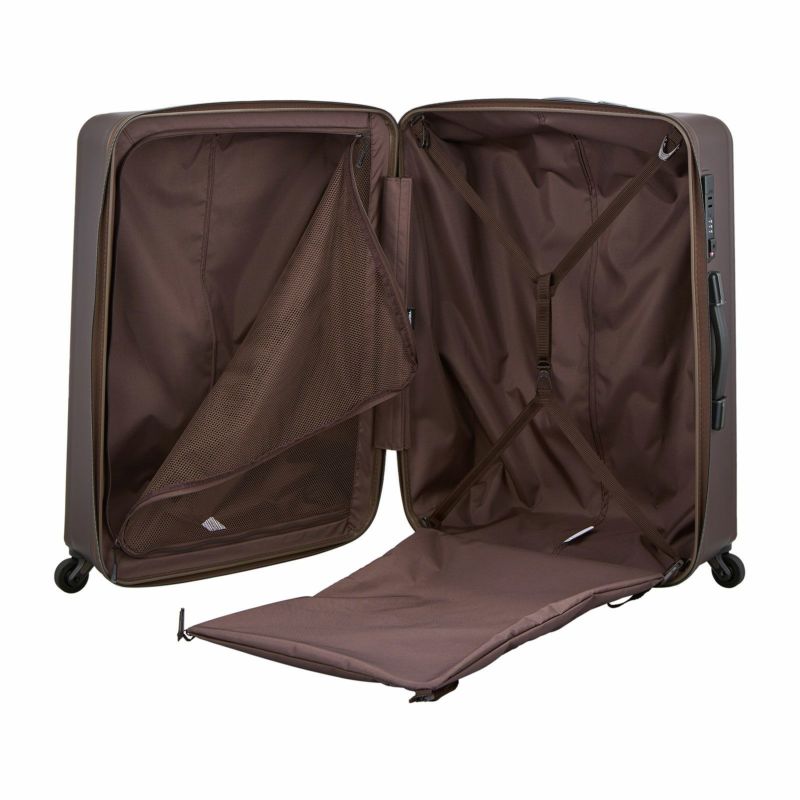 約105L入る大容量なのに重さはわずか3.6kgの超軽量スーツケース!ボディは軽量で丈夫な、飛行機の窓にも使われる耐衝撃性、耐熱性に優れたポリカーボネート100%のドイツ、バイエル社製のマクロロン素材を採用。