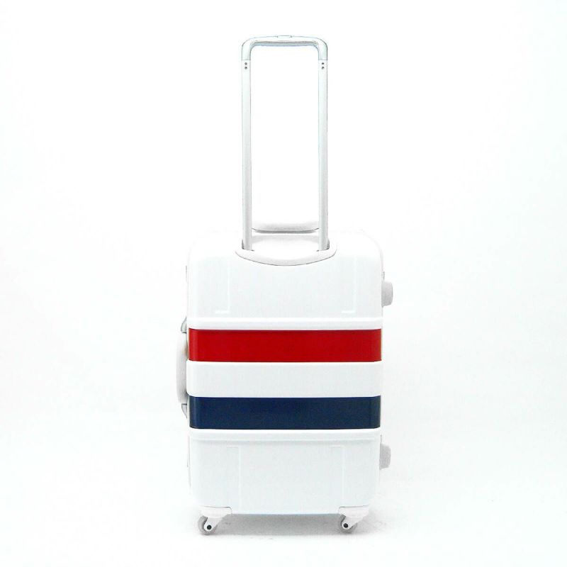 トリコロールカラーが魅力のおしゃれなスーツケース。ネットでしか手に入らない限定商品です。車軸部分にグリスパックを装着し、潤滑油の消耗を大幅に軽減。熱をもちにくく、滑らかで静かな走行が保てます。