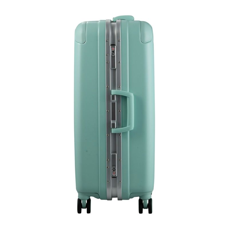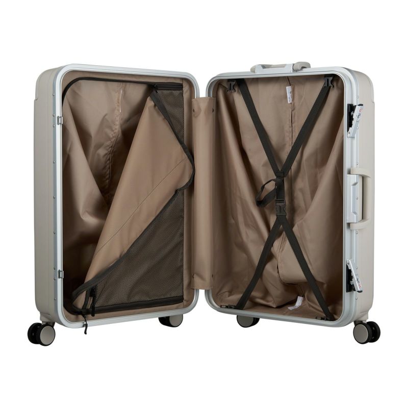 フレームタイプのスーツケース。ボディには剛性・耐衝撃性がある『ABS樹脂』に、飛行機の窓などにも使われる頑強&軽量素材の『ポリカーボネート』を加えた混合素材を採用。頑強なボディで大切なお荷物を守ります。