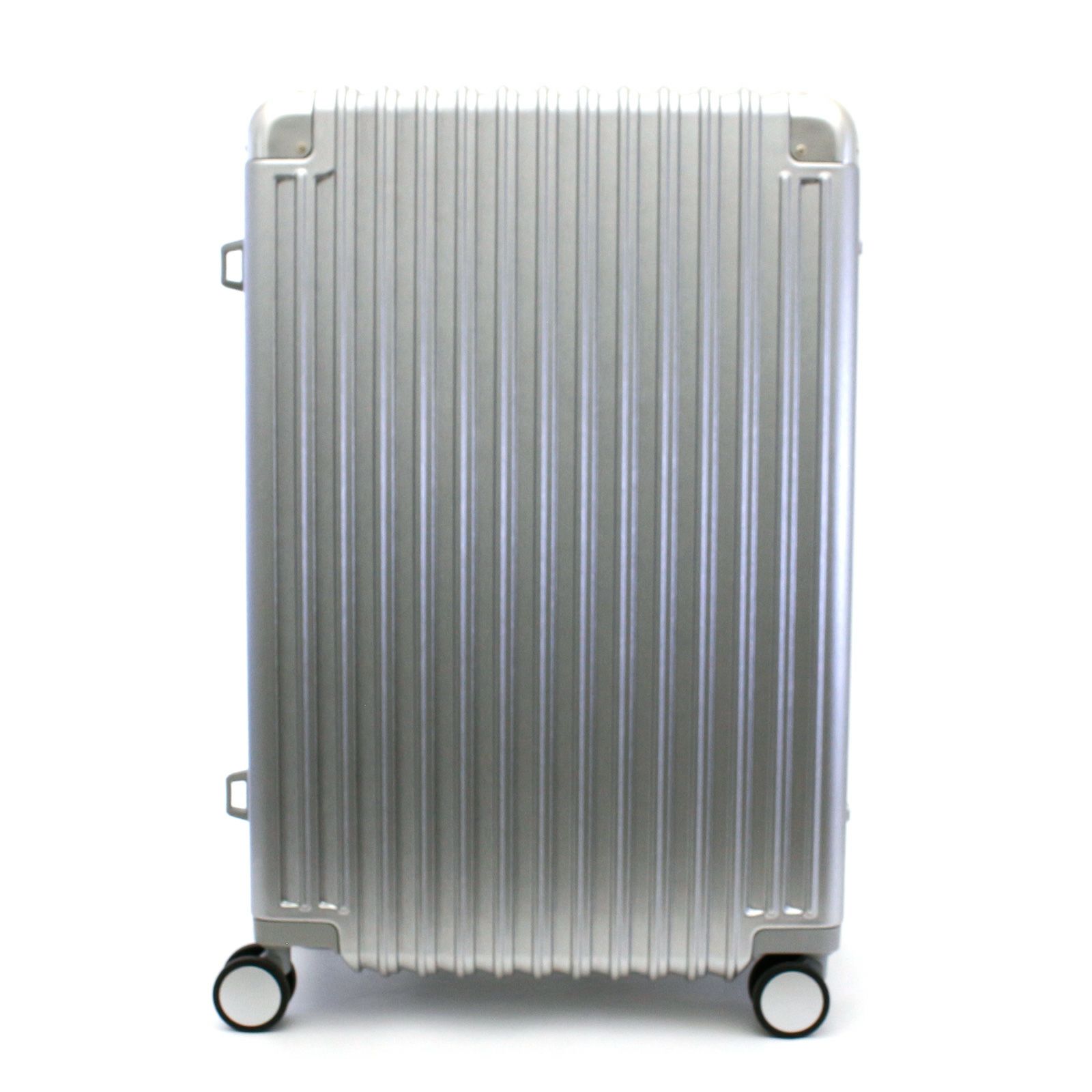 ボディは本物のアルミニウムのようなアルミ調ポリカーボネートフィルムを使用。アルミよりも自重が軽く仕上げられ、移動する際のからだの負担を軽減します。ボディのコーナーパッドはアルミ製を採用。角の傷つきやへこみからスーツケースを守ります。