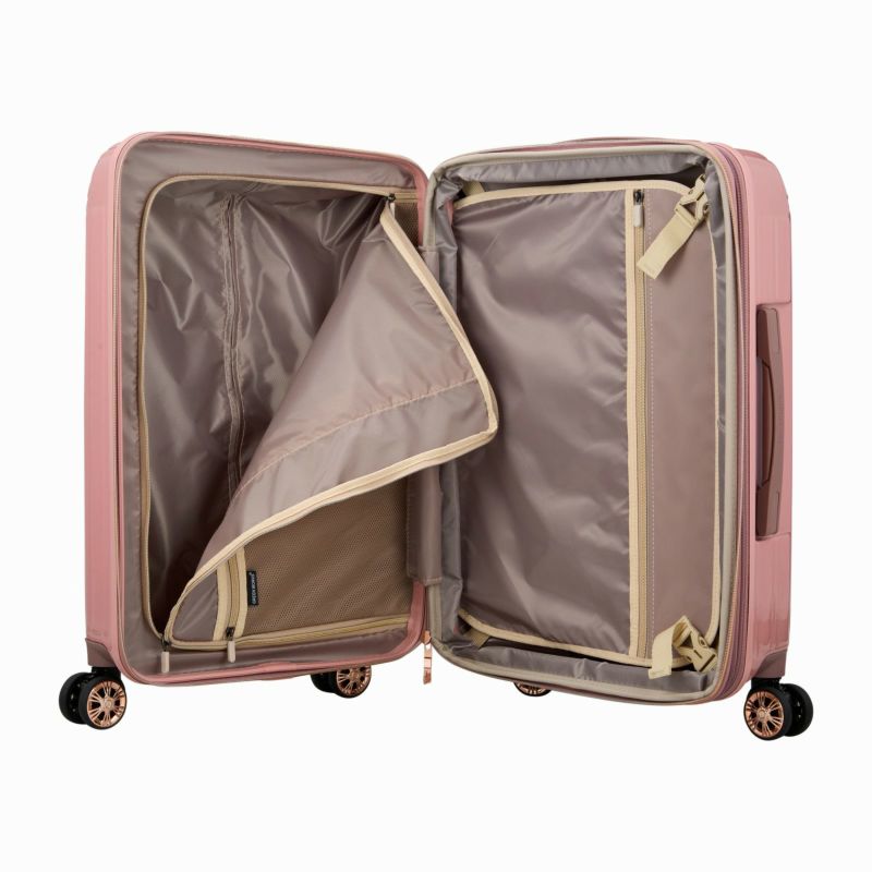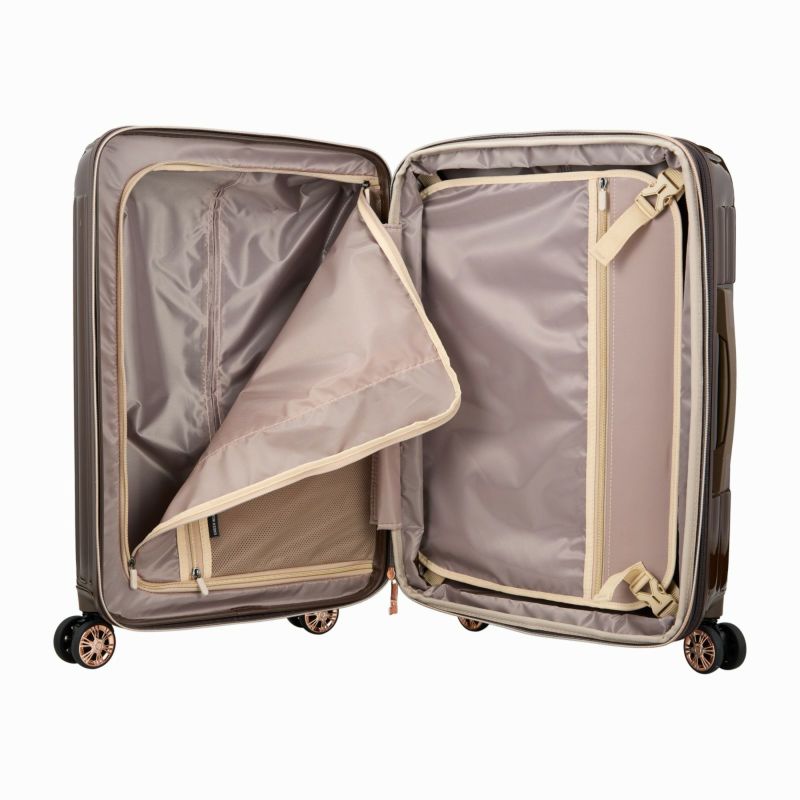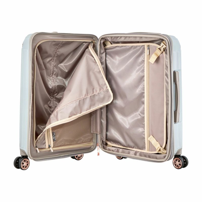 ボディには剛性・耐衝撃性がある『ABS樹脂』に、飛行機の窓などにも使われる頑強&軽量素材の『ポリカーボネート』を加えた混合素材を採用。頑強なボディで大切なお荷物を守ります。フタ側の仕切りはファスナーで閉じられるので、開閉の際に荷物がこぼれる心配がありません。
