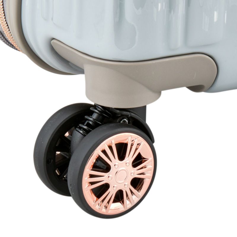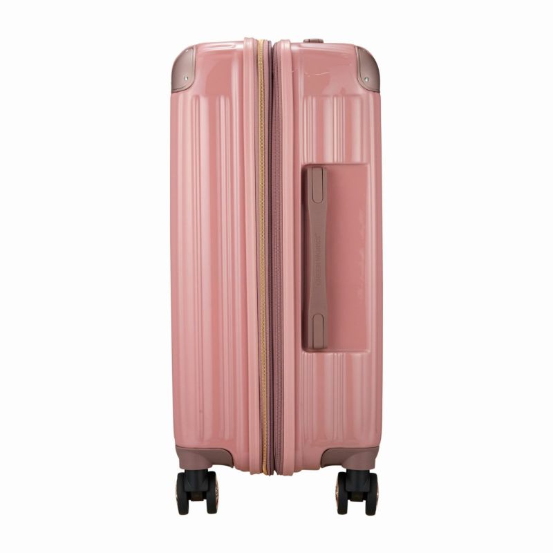 荷物やお土産が増えても安心の『拡張機能』搭載。拡張ファスナーを広げると容量が約8Lアップ。安定した走行が可能な双輪キャスターは凸凹道でも衝撃を吸収するサスペンション付き。スムーズ&軽やかで快適な走行を実現しました。さらにキャスターに抗菌加工を施しています。