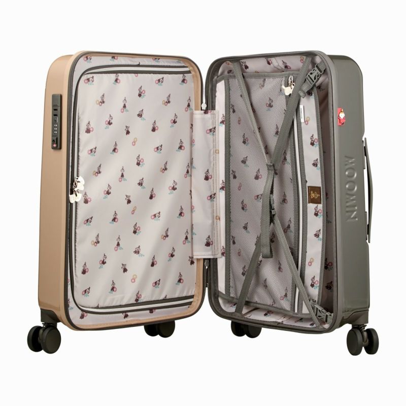 お絵描きを楽しむミイがスーツケース正面にエンボス加工でデザインされています。背面にはミイの後ろ姿!スーツケース側面にはミイの姿のタグがついており、内装の生地はミイの総柄となっています。また、内装のファスナートップもミイの形をしており、細部までこだわったデザインです。スーツケース本体のカラーも2トーンになっているのもおしゃれ!