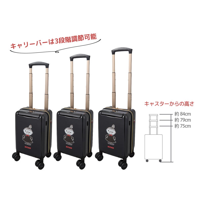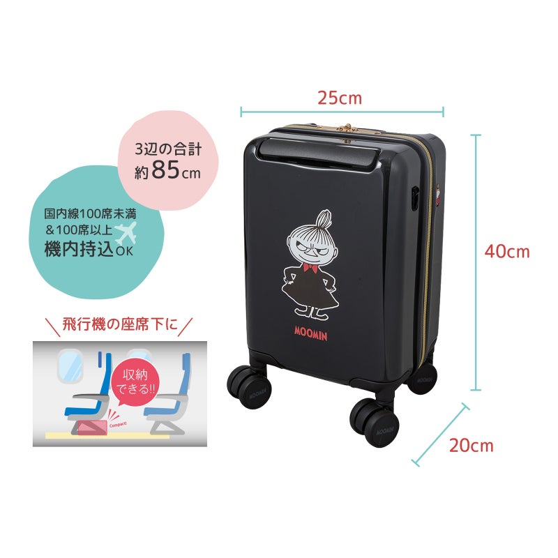 MOOMIN 機内座席下収納可サイズ 国内線100席未満・100席以上機内持ち込み対応サイズ スーツケースにキャリーオン可能 ダブルキャスター プチキャリー スーツケース 12L ジッパータイプ ムーミン モノトーン リトルミイ HAP2343-33