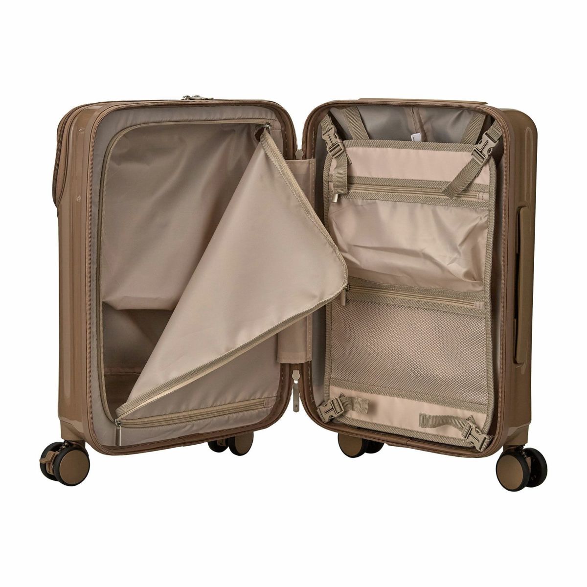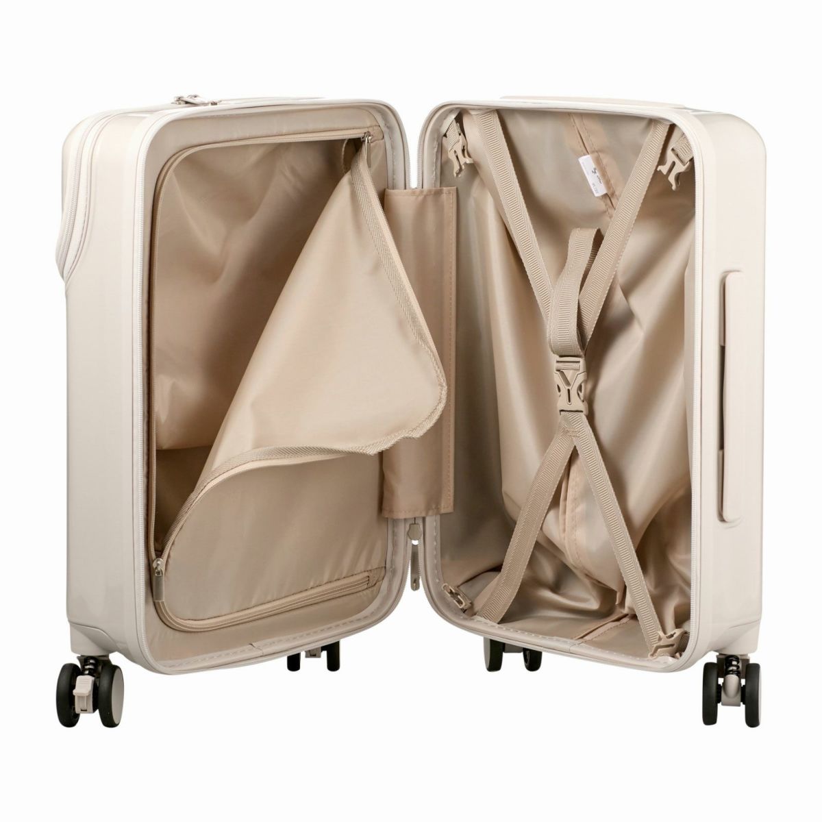 他の画像を見る オリジナルブランド ハピタスプラス 1年保証 トップオープン ダブルキャスター ストッパー付きサスペンションキャスター 機内持込可能 カップホルダー付き 上パカ スーツケース Sサイズ ジッパータイプ ハピタスプラス HPL2302-S 販売価格 ¥ 17,380 税込