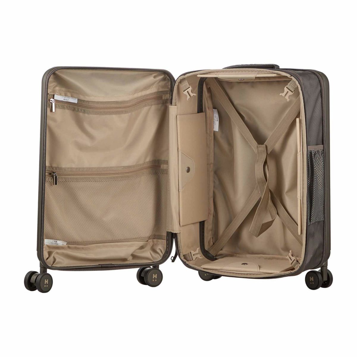他の画像を見る オリジナルブランド ハピタスプラス 1年保証 ダブルキャスター ストッパー付きサスペンションキャスター 機内持込可能 カップホルダー付き 上パカ スーツケース Sサイズ ジッパータイプ ハピタスプラス HPL2302-S 販売価格 ¥ 17,380 税込