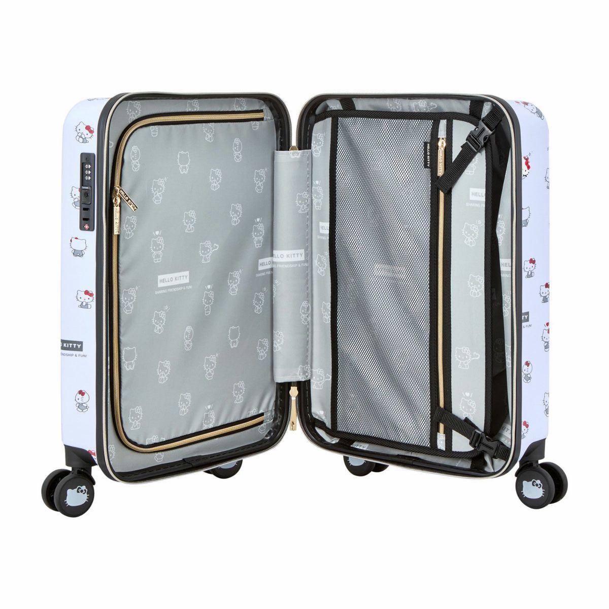 他の画像を見る サンリオキャラクターズ 1年保証 HELLO KITTY 機内持ち込みサイズ ダブルキャスター サスペンション ダイヤルロック スーツケース 日焼け ハローキティ サンリオキャラクターズ Sサイズ カップホルダー付き ジッパータイプ HPL2333-48 販売価格 ¥ 17,600 税込