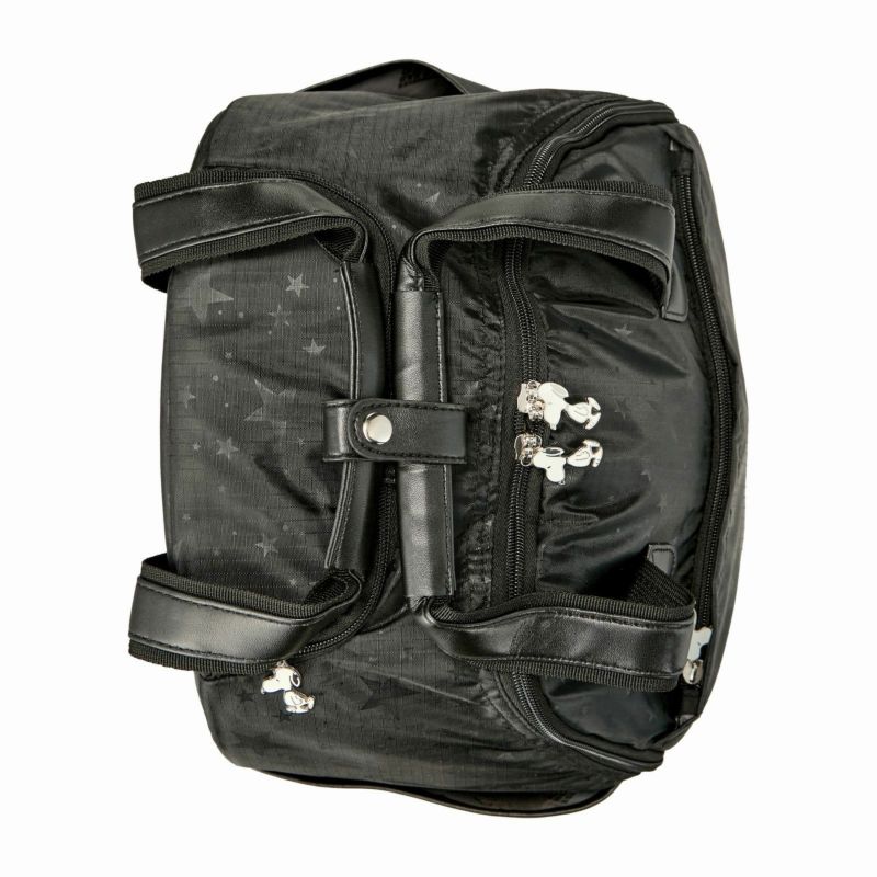 キャリーバッグのフタは面ファスナーで本体とくっついているので、キャリーバッグを立てたままでも中の荷物がこぼれないように開閉することができます。フタ部分にはメッシュポケットがついています。キャリーバッグの正面や側面にもポケットがついているので、すぐに取り出したいものを収納するのに便利です。通常のご使用で、約10~15kg以内の荷物を運ぶことを想定して作られています。