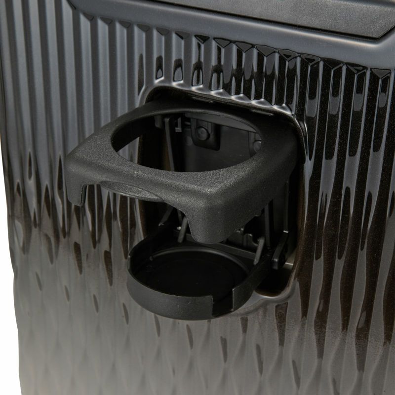 デザインだけでなく、実用性も抜群。背面にはカップホルダー付きなのでペットボトル等を簡単に収納してスーツケースを持ち歩くことができます。