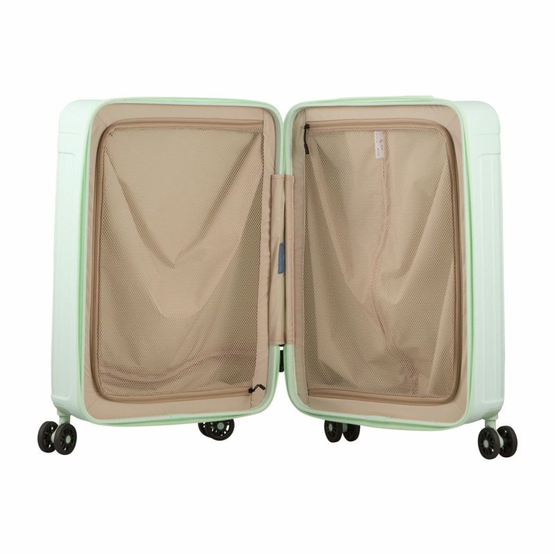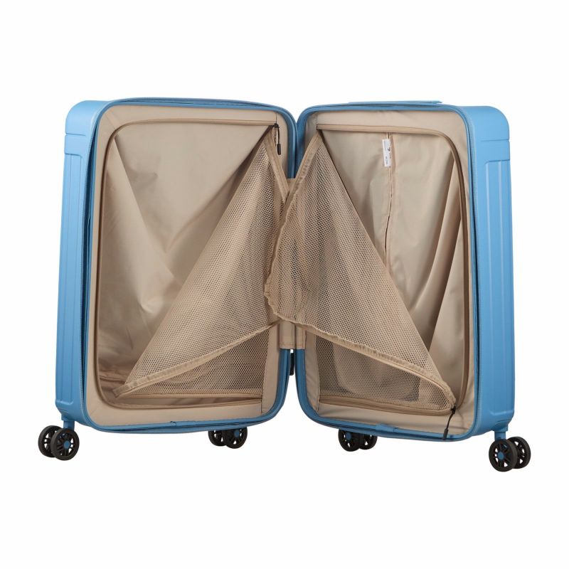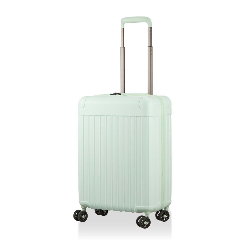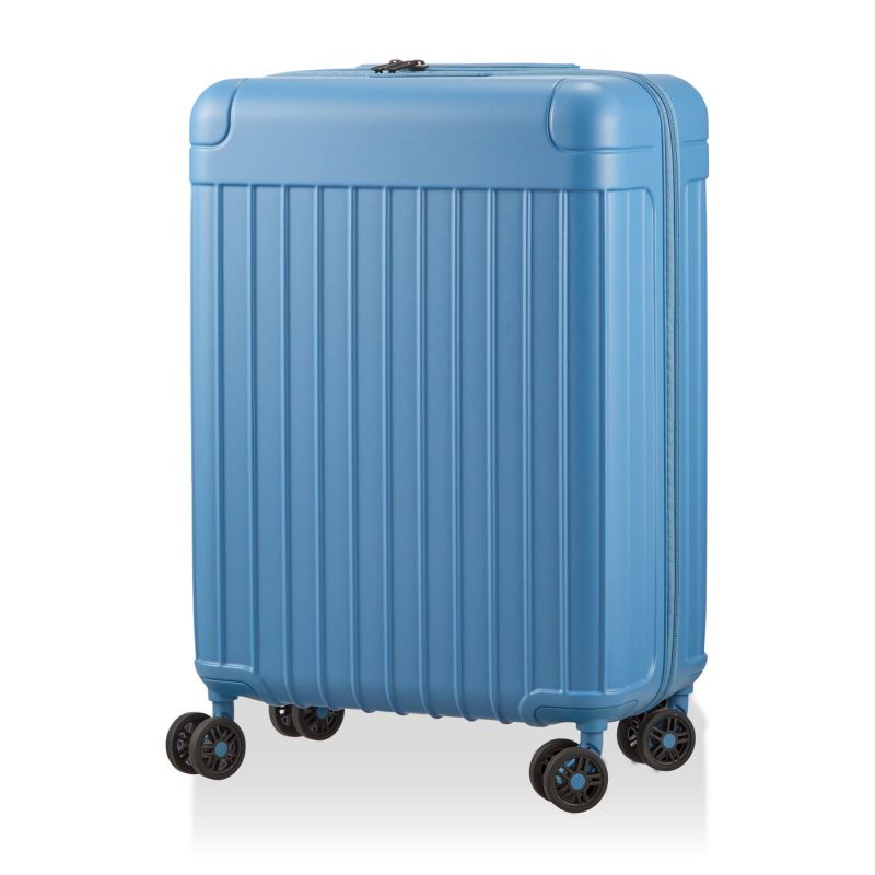 本体素材は飛行機の窓にも使われている軽量で丈夫なポリカーボネートを採用。軽さだけでなく強度も抜群です。LCCや国内線100席以上の機内持ち込み可能サイズです。