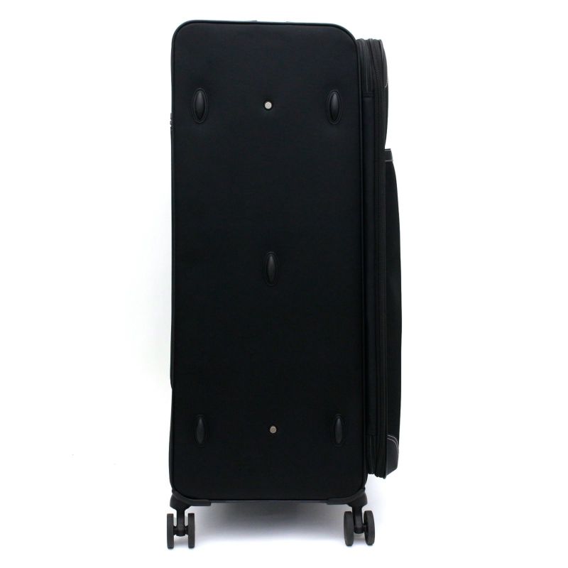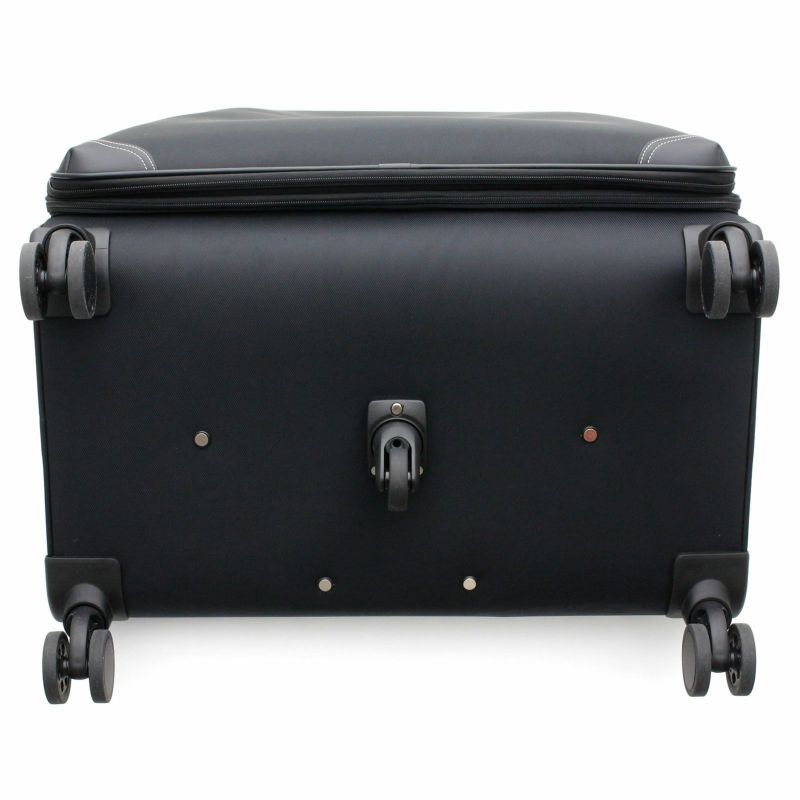 機能性抜群の5輪キャスター搭載。360度回転するので方向転換も思いのままに。ダブルキャスターなので凹凸の多い路面でも安定した走行が可能です。中央のキャスターのみシングルキャスターですが、これは荷物の重さでスーツケースがたわみ、底面が床についてしまうのを防ぐ役割があります。通常時は少し浮いていますが品質には問題ありません。