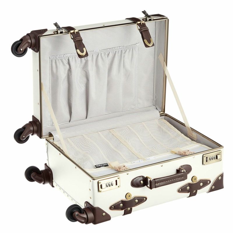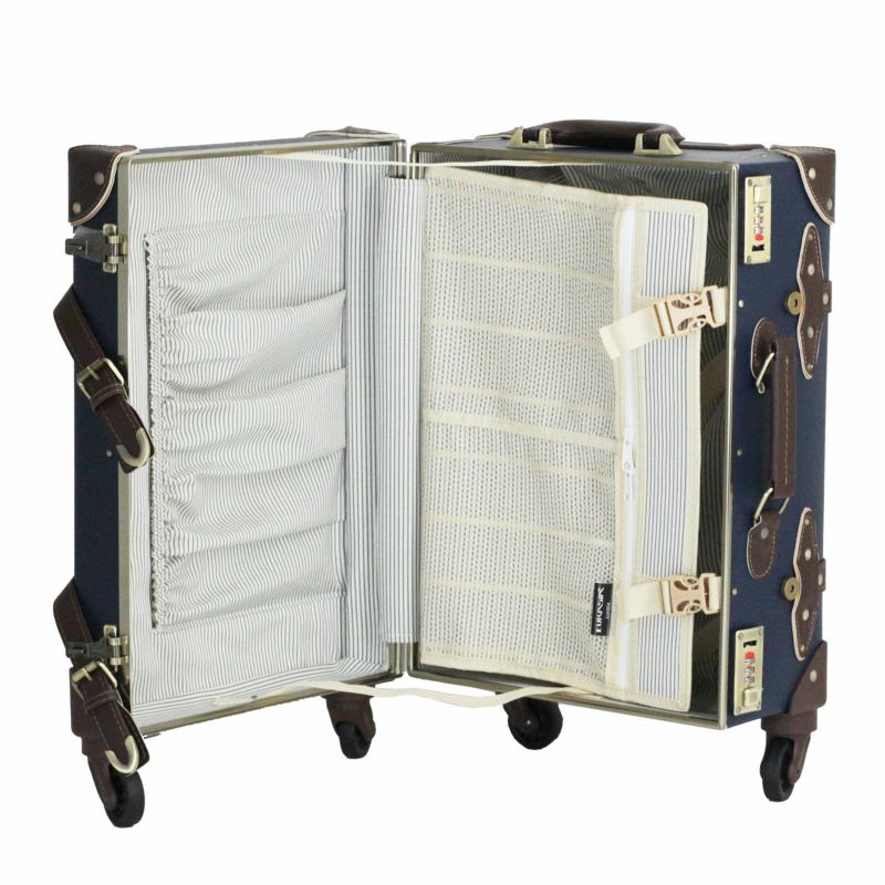 クラシカルなコンビカラーのユーラシアトランク。合皮で扱いやすい軽量タイプ。軽くて傷や汚れにも強く、雨の日の使用も安心。レトロなダイヤルロック錠、ポケット付の内装などオシャレさと機能性を両立したユーラシアトランクです。