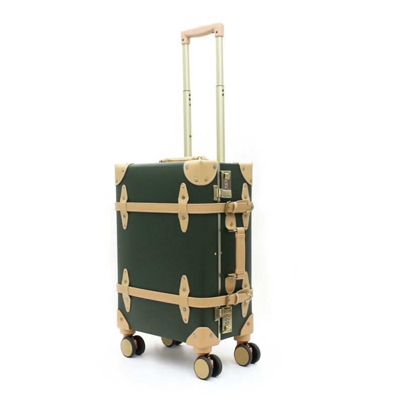 クラシカルなコンビカラーのユーラシアトランク。合皮で扱いやすい軽量タイプ。軽くて傷や汚れにも強く、雨の日の使用も安心。ダブルキャスターで安定した走行が可能。レトロなダイヤルロック錠、ポケット付の内装などオシャレさと機能性を両立したユーラシアトランクです。