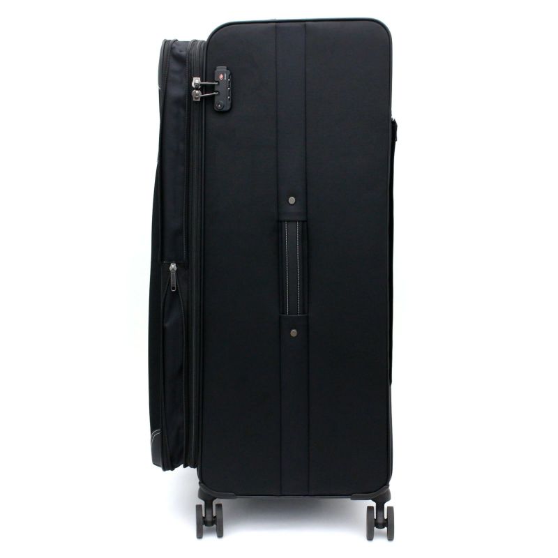 スーツケース前面と背面にはポケットが付いており、すぐに取り出したいものの収納に便利です。前面ポケットは幅約51cm、深さ約58cm。薄手の大きいものが入ります。メインファスナーには、YKKが鞄向けに設計した耐摩耗性に優れた織り込みファスナーを採用。高い摩耗性能だけでなく、従来品よりも見栄えの良いフラットな外観を実現しています。