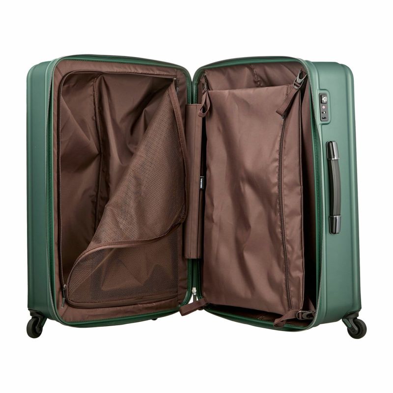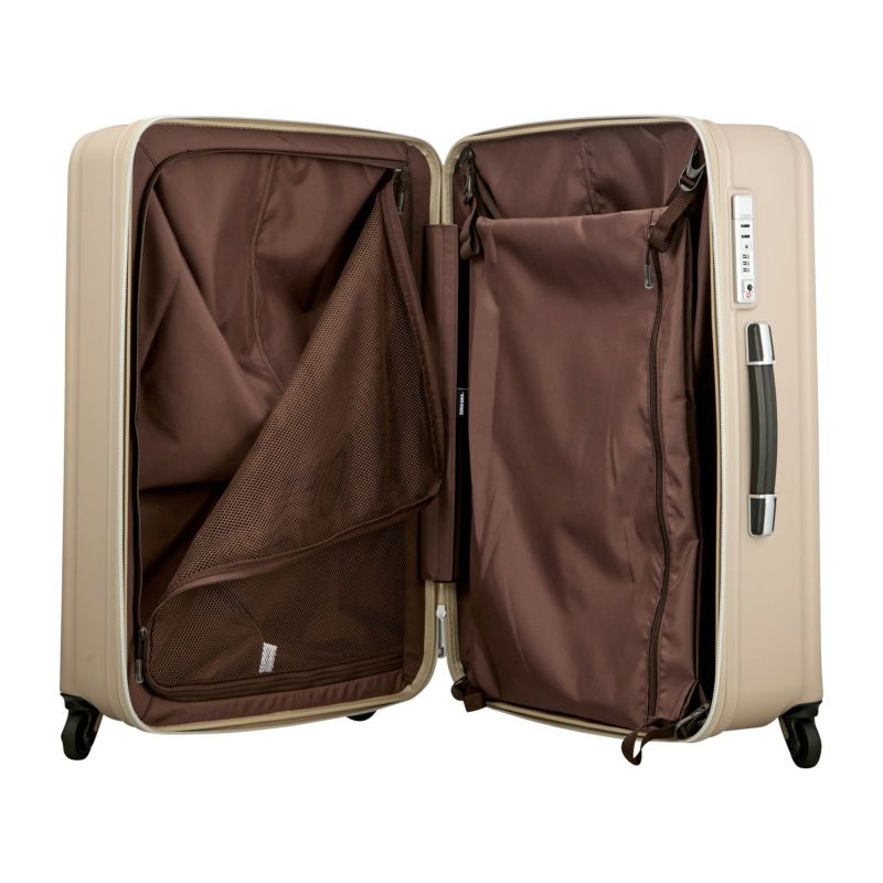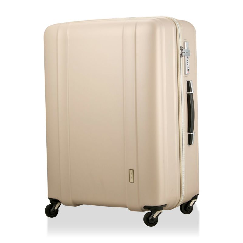 約105L入る大容量なのに重さはわずか3.6kgの超軽量スーツケース!ボディは軽量で丈夫な、飛行機の窓にも使われる耐衝撃性、耐熱性に優れたポリカーボネート100%のドイツ、バイエル社製のマクロロン素材を採用。