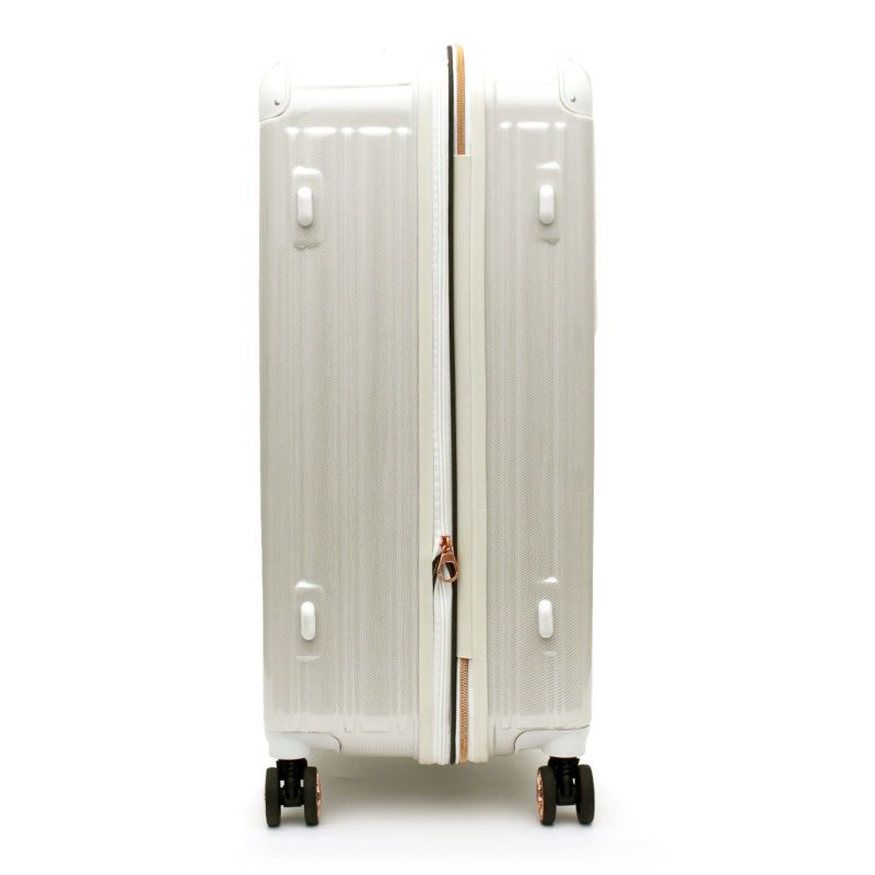 ボディには剛性・耐衝撃性がある『ABS樹脂』に、飛行機の窓などにも使われる頑強&軽量素材の『ポリカーボネート』を加えた混合素材を採用。頑強なボディで大切なお荷物を守ります。フタ側の仕切りはファスナーで閉じられるので、開閉の際に荷物がこぼれる心配がありません。