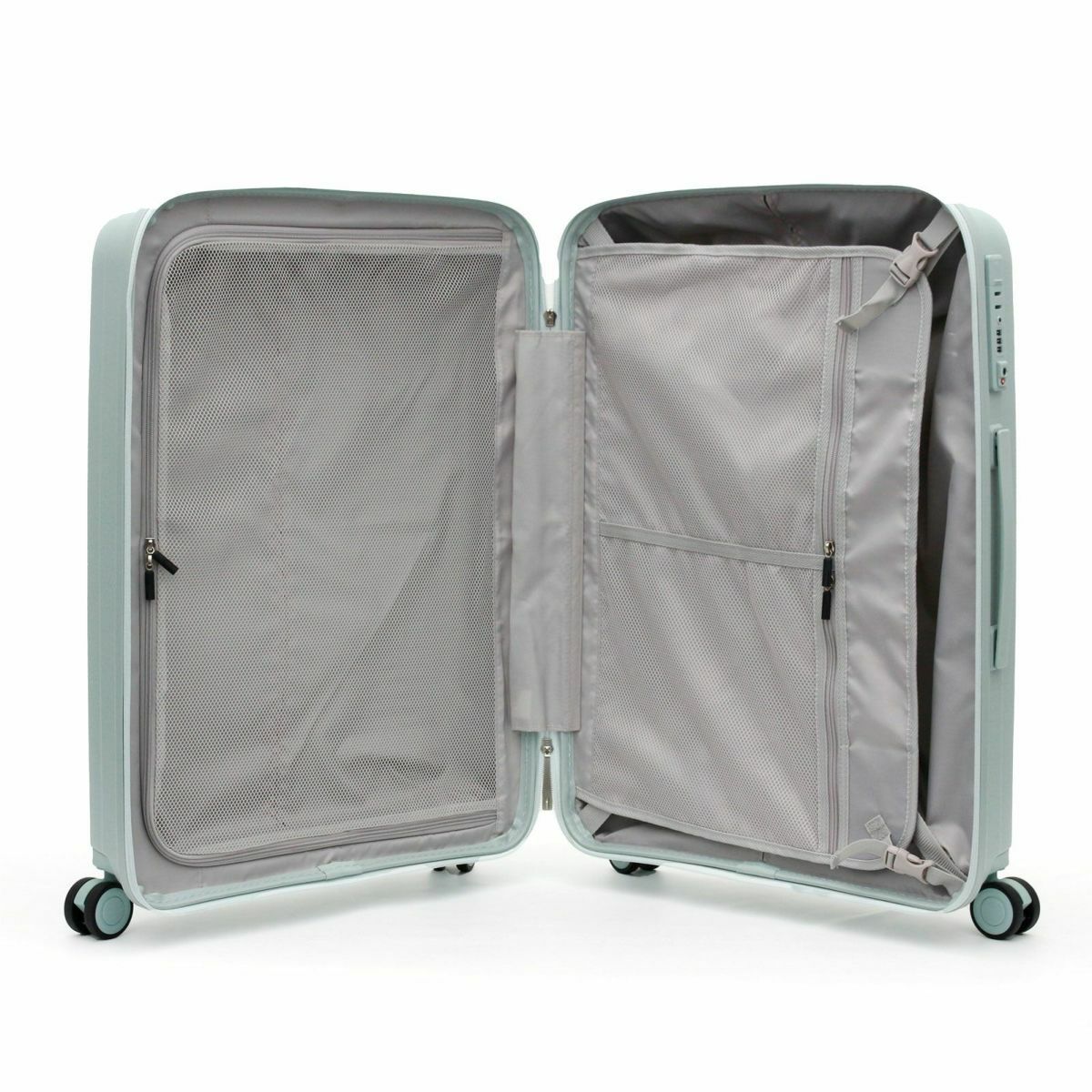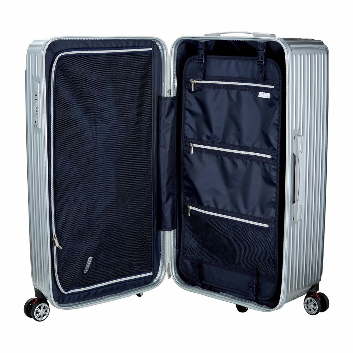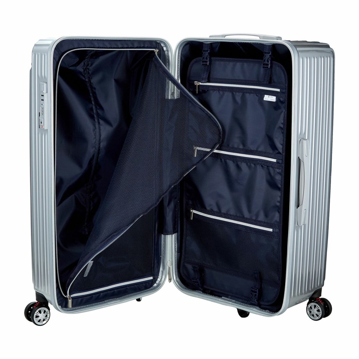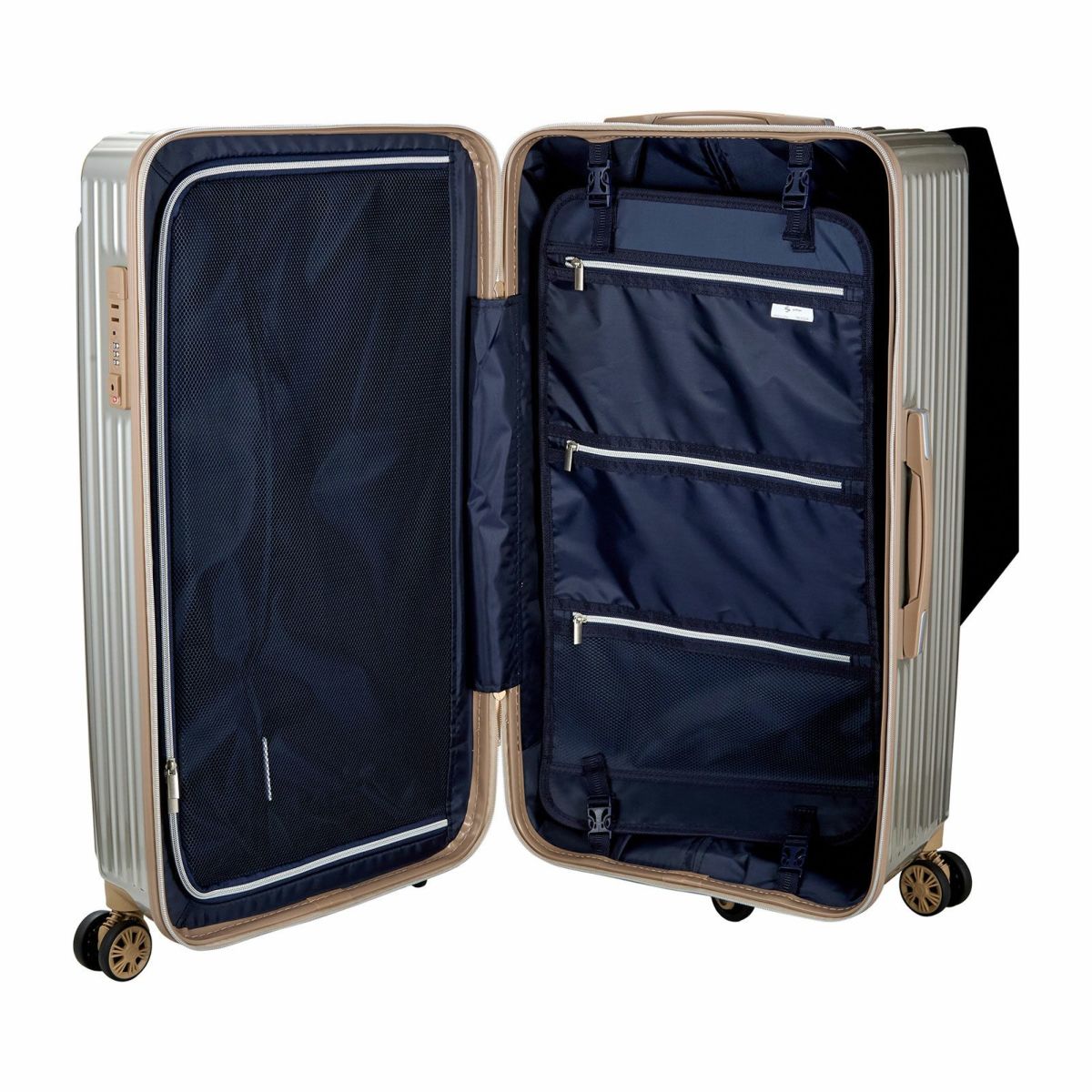 他の画像を見る ROYAL PARTY 1年保証 ストッパー付きサスペンションキャスター ダブルキャスター 台座フック 容量拡張 シフレロック カップホルダー付き 上パカ スーツケース Mサイズ ジッパータイプ ROYAL PARTY ROY2321-M 販売価格 ¥ 21,780 税込
