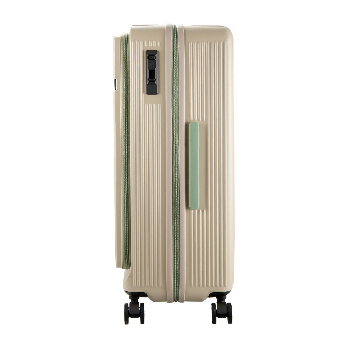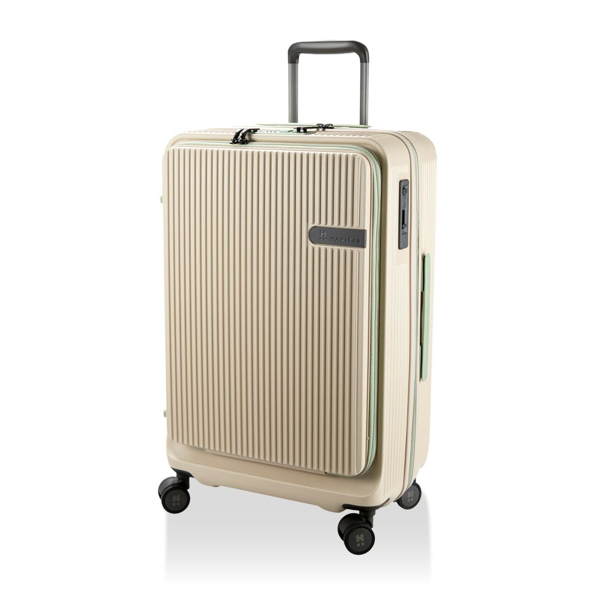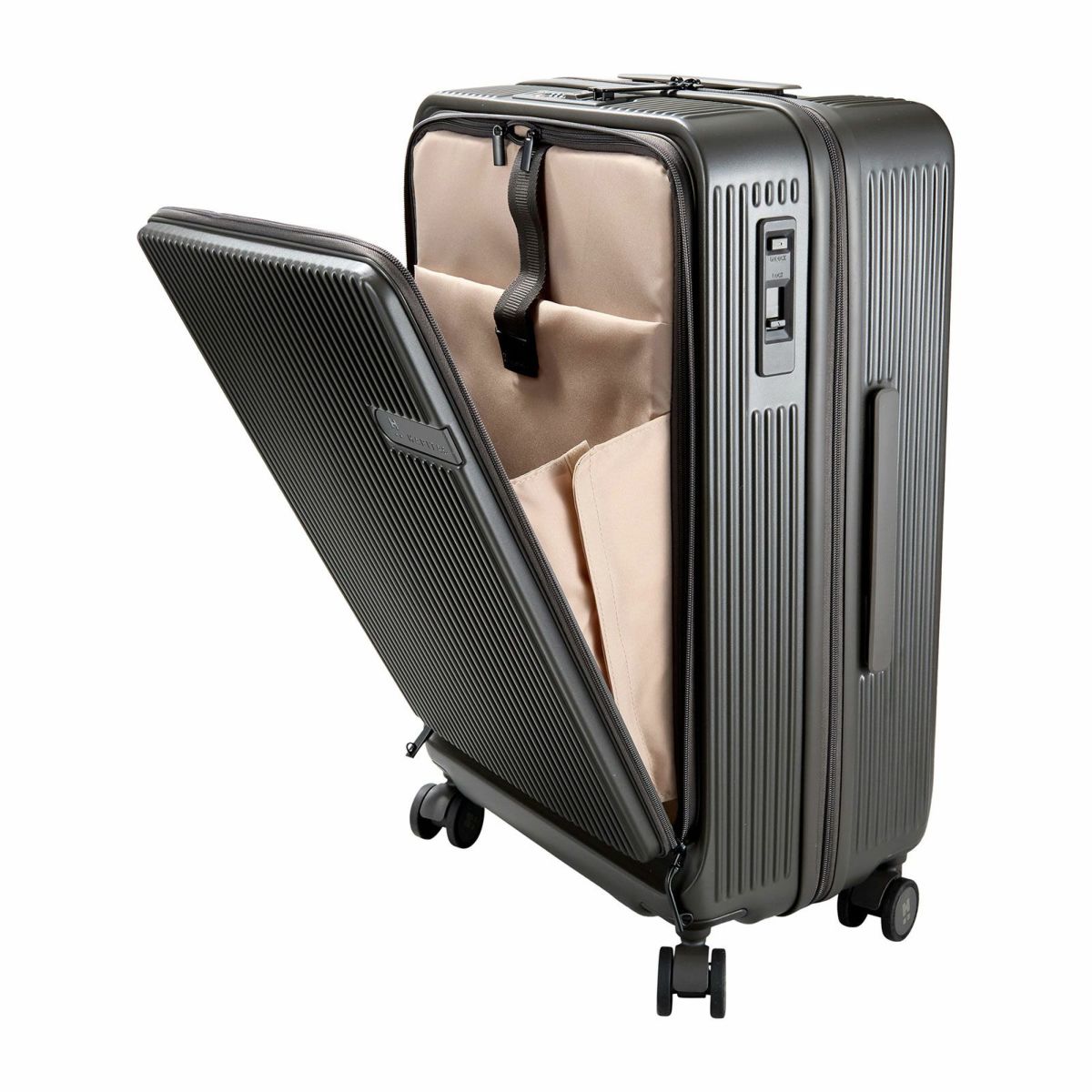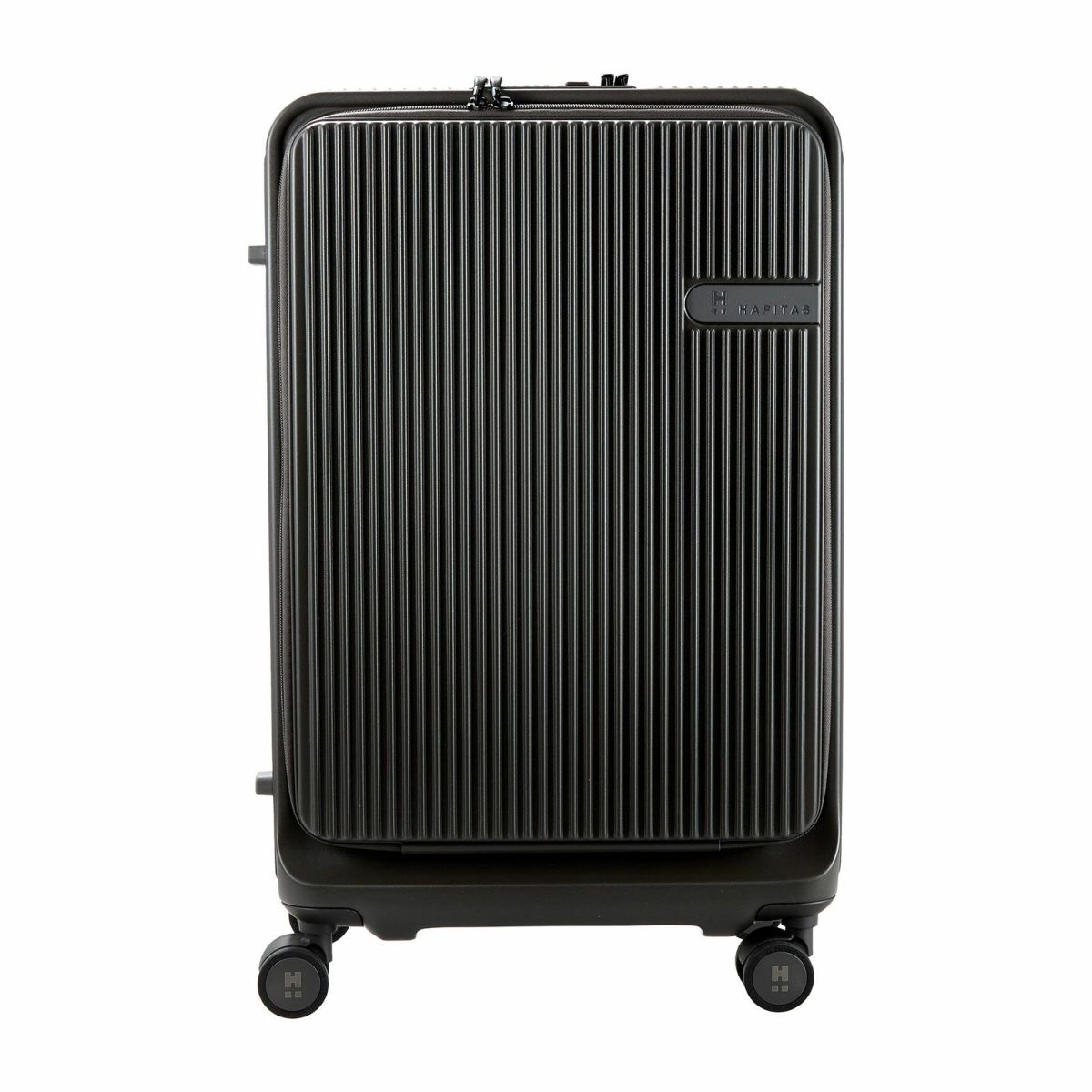 他の画像を見る オリジナルブランド ハピタスプラス 1年保証 フロントオープン ダブルキャスター HINOMOTO製ストッパー付き静音キャスター カップホルダー付き 前パカ スーツケース Mサイズ ジッパータイプ ハピタスプラス HPL2306-M 販売価格 ¥ 23,980 税込 在庫切れ