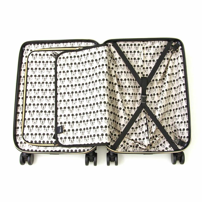 大人気ミッキーマウスやミッキーの仲間たちのフェイスがデザインされたジッパースーツケース。