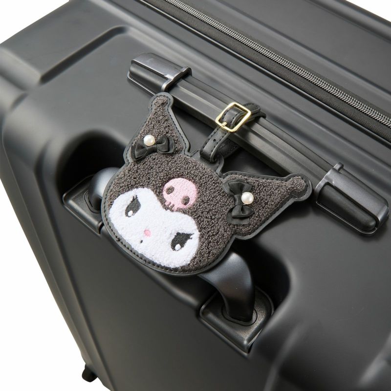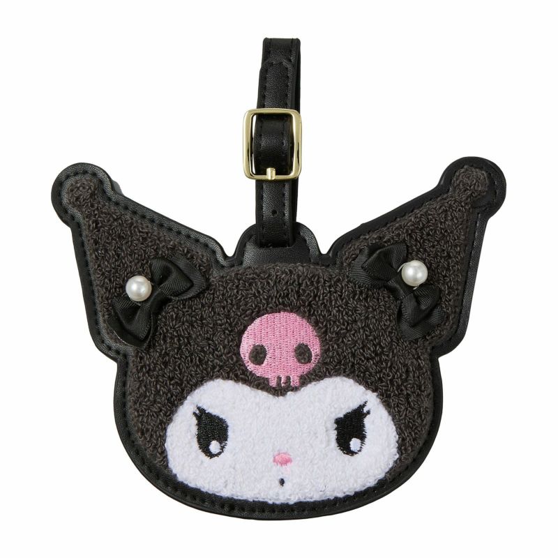 ハローキティ、マイメロディ、クロミのお顔の形をしたラゲッジタグ。サガラ刺繍でもこもこな手触り。