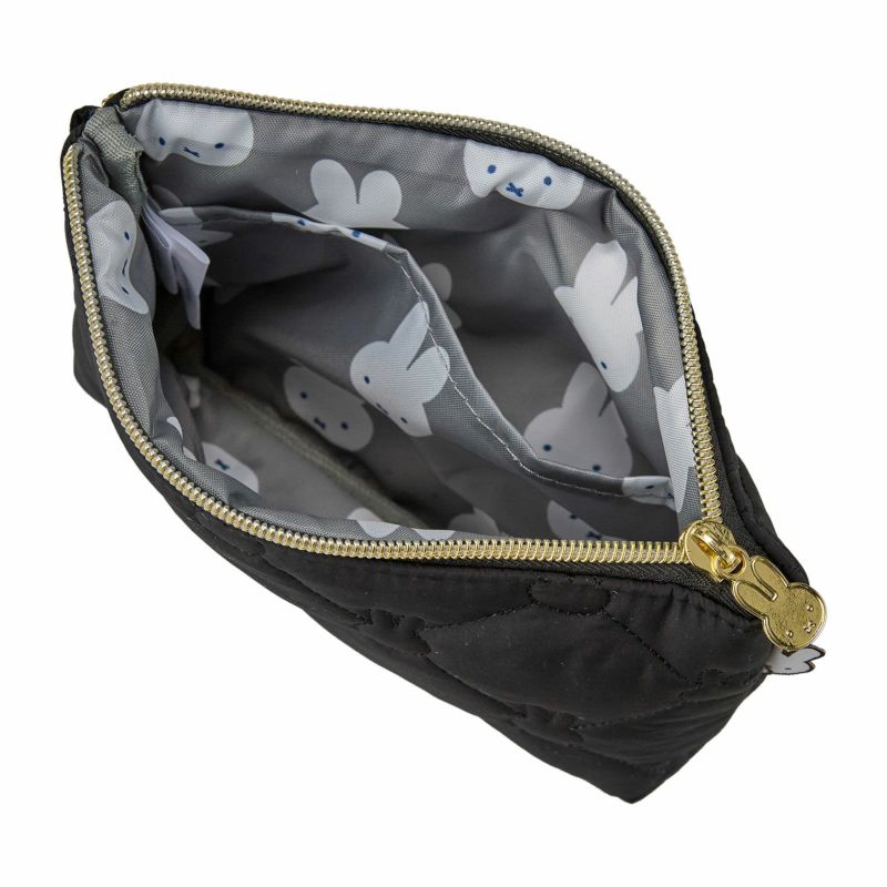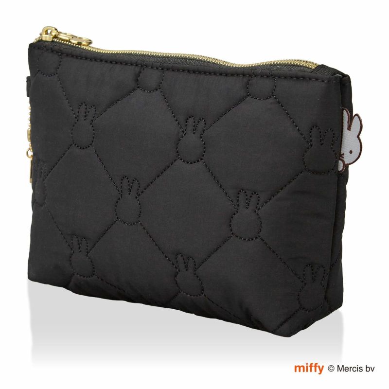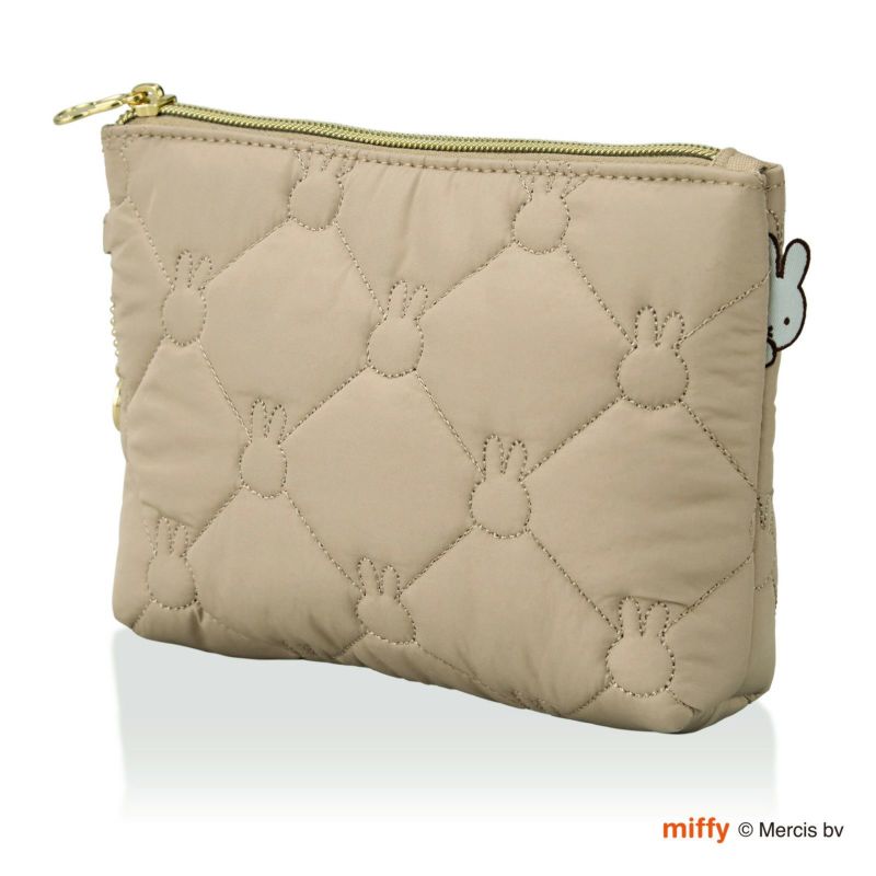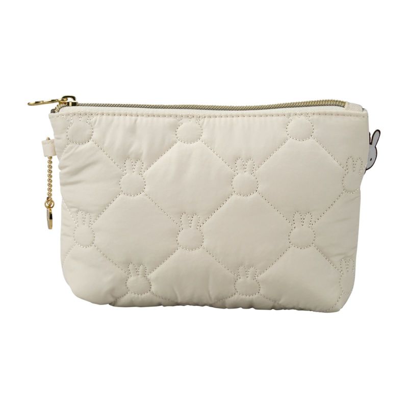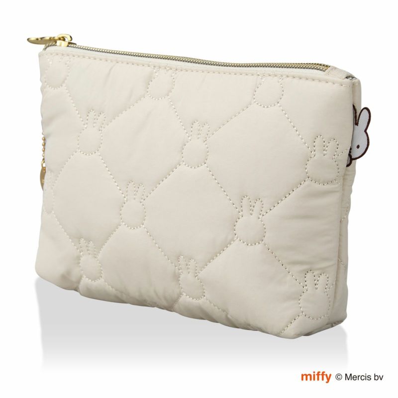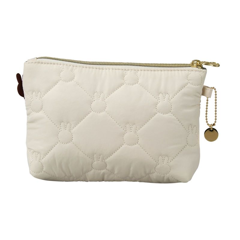 ふわふわとした生地感で軽くて丈夫なミッフィーのキルティングポーチ。コスメ、アクセサリー、目薬、お薬などの小物を入れるのにおすすめ。バッグの内装にはポケットが付いています。開口部はファスナーで閉じることができます。