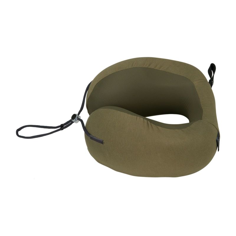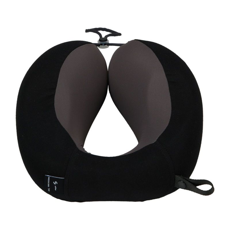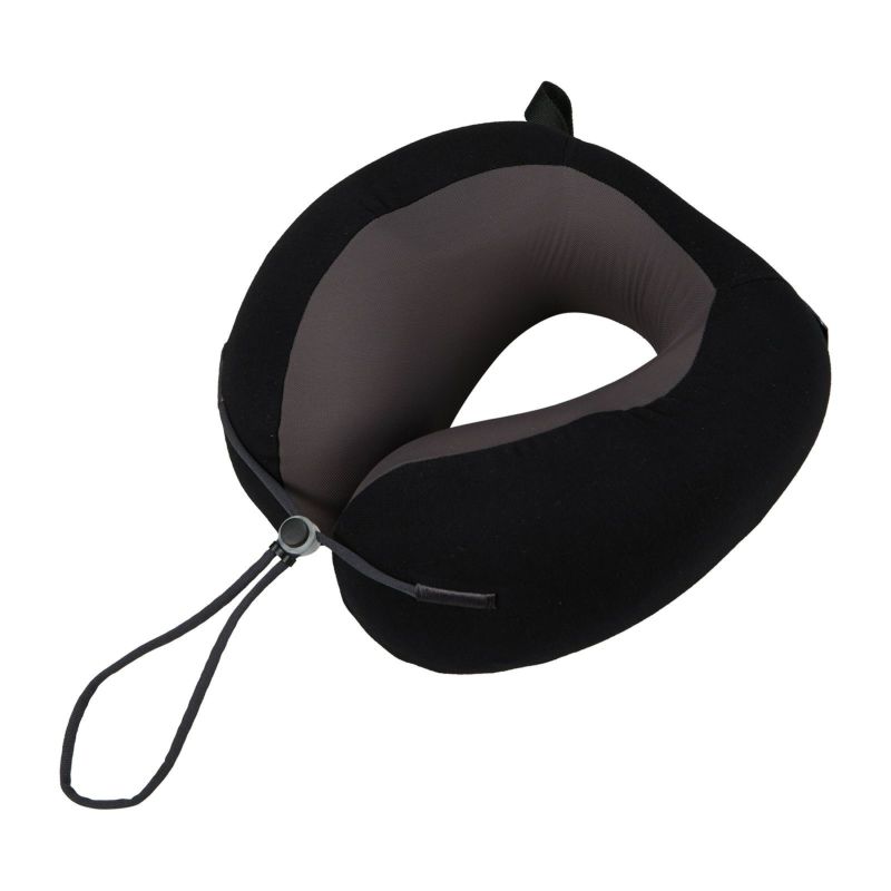 適度な硬さの低反発タイプで、柔らかく肌触りのいい生地を使用しているので使い心地抜群。枕の先には紐がついているので、枕が首にフィットするよう調整することができます。また、バッグやスーツケースに引っ掛けられるストラップ付きで持ち運びもしやすい。