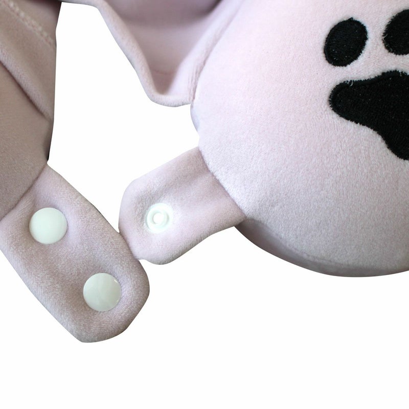ネコ耳フードが付いたかわいいデザイン。首を安定させて楽な姿勢を保ち、快適な睡眠をサポートしてくれるネックピロー。肌触りの良い生地、枕の中身は低反発素材を使用しているので使い心地バツグン!首元のスナップボタンで留められるので、安定感も抜群です。まくらを付けてフードをかぶると、目線が隠れて人目を気にせずリラックス♪