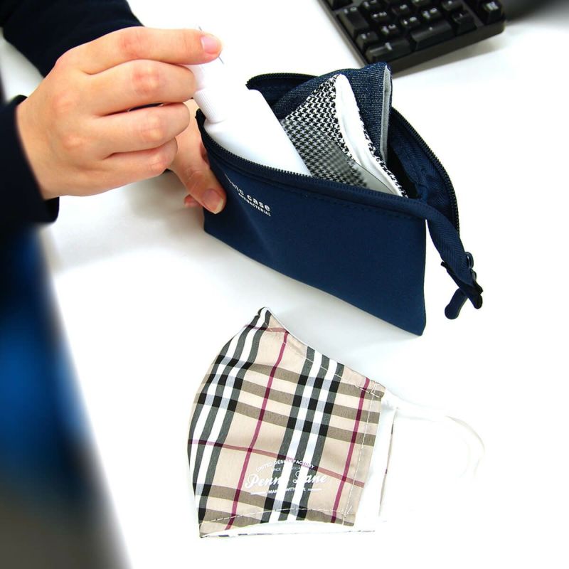やわらかくクッション性のあるポリウレタン生地(抗菌素材)が中身をやさしく守ります。ポーチの内装には取り外しできるアクリル板付きで、使用中のマスクと新しいマスクを仕切って収納することができます。マスク以外にも、ポケットティッシュやハンドクリーム、コスメなどの小物を収納するポーチとしても利用できます。