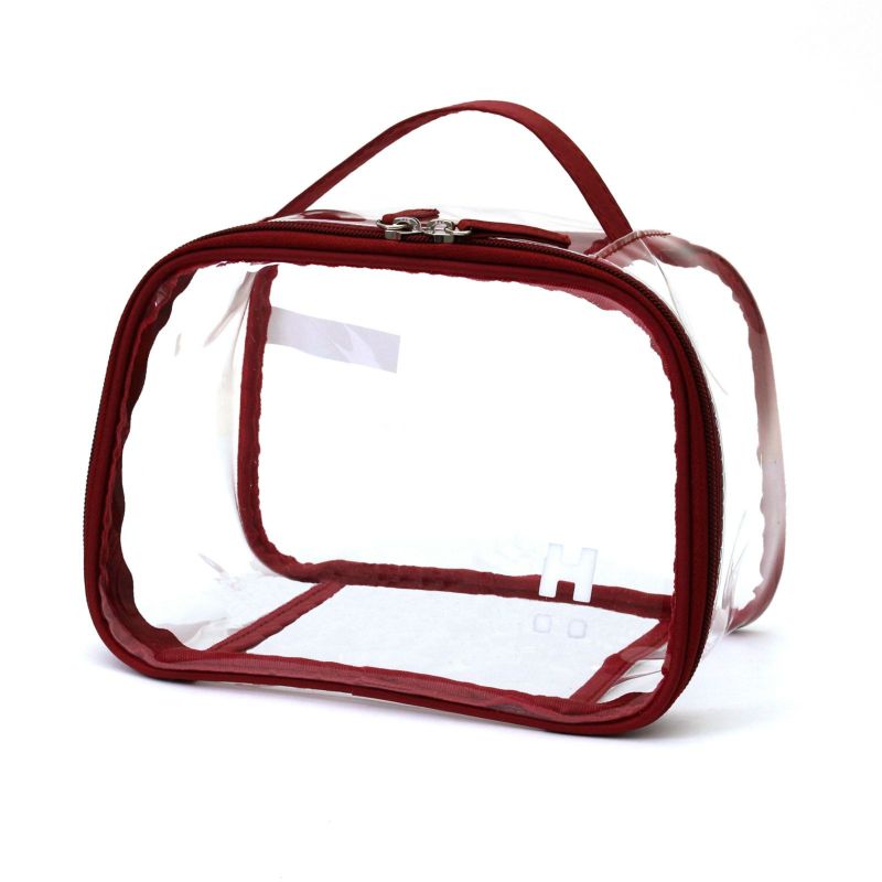 外装のクリアポーチも何か収納してポーチとして使うことができます!中身が見えるため、スーツケース内の荷物の整理にもおすすめ。持ち手が付いているので、旅先で洗面用具などを入れて持ち運ぶ際にも便利です。