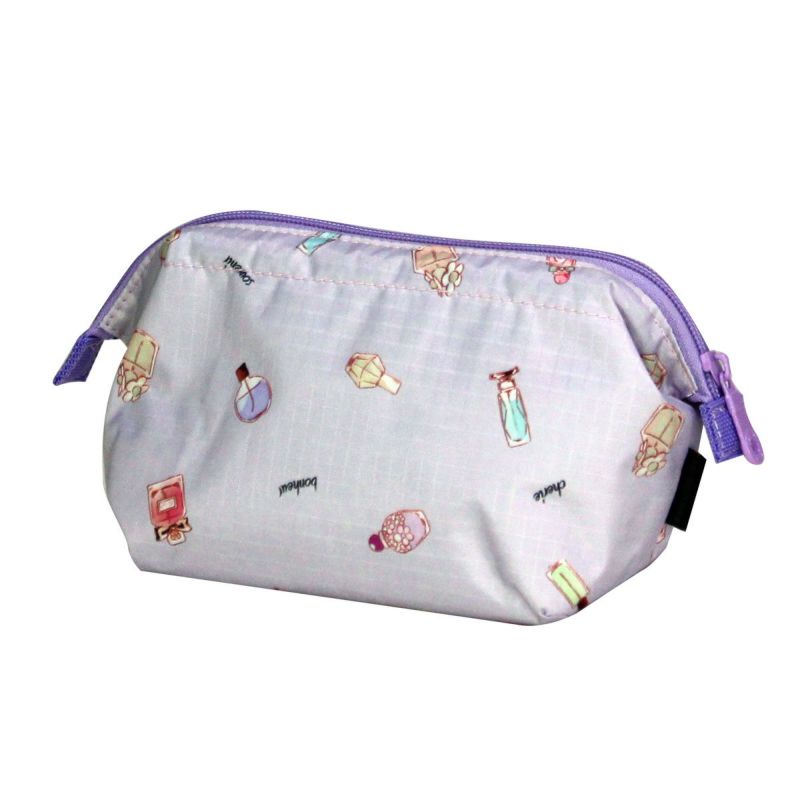 口が大きく四角に開いて中身が取り出しやすい、スタンドポーチ。化粧品や薬などを収納するポーチとして、バッグ内で迷子になりがちな小物類の収納として便利です。