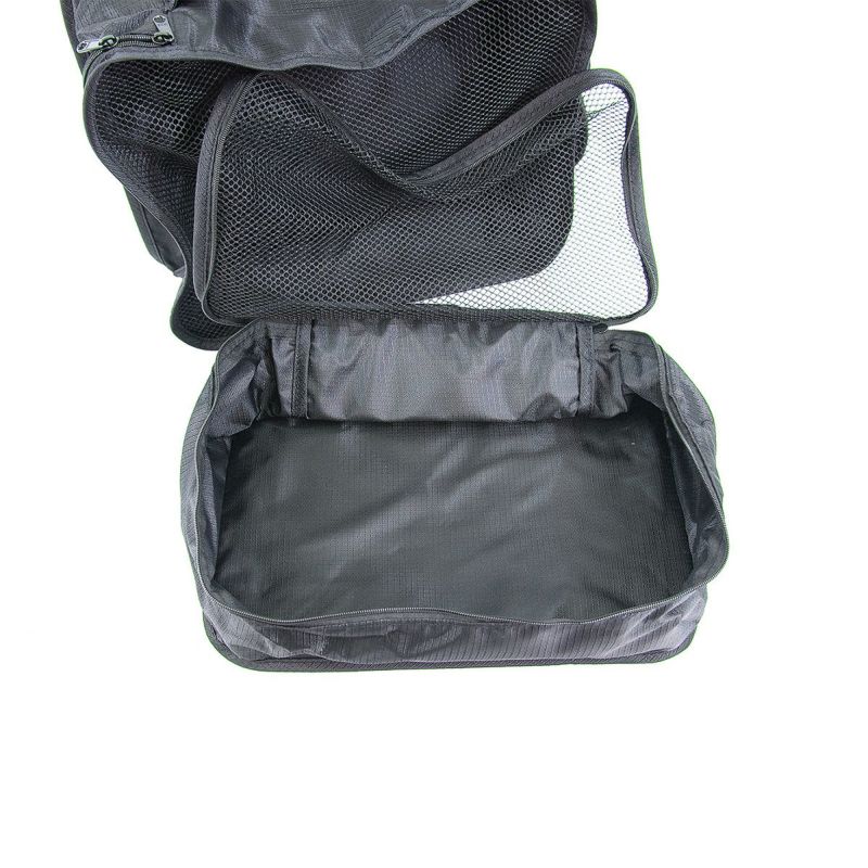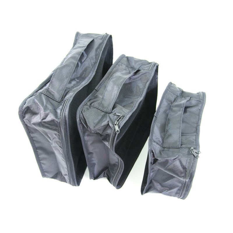 色々な用途に使えるトラベルポーチ6点セットです。マチ付きオーガナイザーが3点、マチ無しのポーチ3点入りの合計6セット。オーガナイザーは、厚みのある衣類を入れるのに最適で、フロント部はメッシュタイプとなり中身がすぐに分かりつかいやす。ポーチは、化粧品や理美容品、小物アイテムの収納に最適。