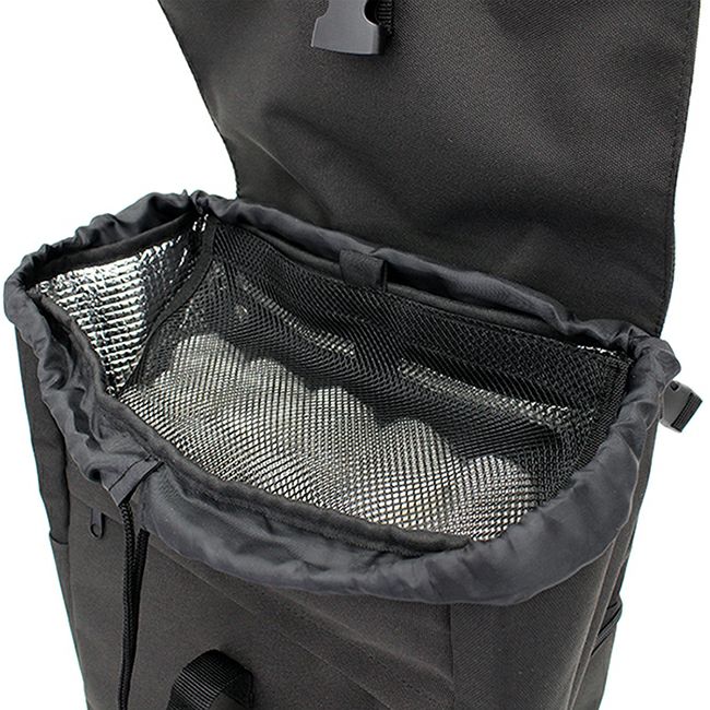 保冷保温機能付きショッピングカート。卵など割れやすいものや潰したくないものは保護ネットを使って収納できるので安心です。また、傘入れポケット付きで雨の日のお買い物でも安心。折畳み可能なので、収納も持ち運びも楽々。