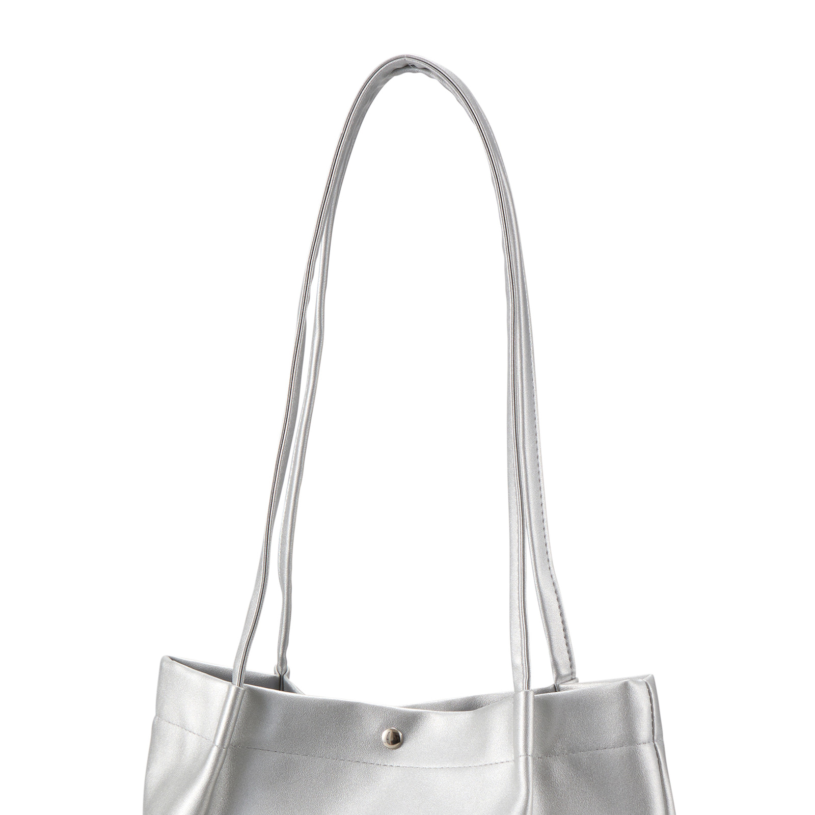 デイリー使いにおすすめな合皮ハンドルタックトート。コーディネートに映える、ブラック・グレー・ブロンズ・シルバーのおしゃれな4色展開。デザインだけでなく、実用性も抜群です。